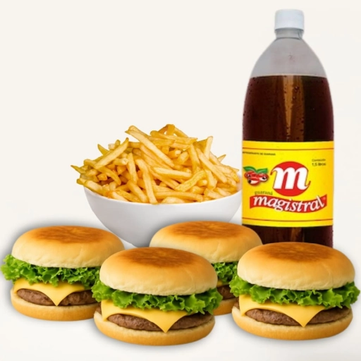4 X-salada + Batata G + Pet 1,5L (regente ou magistral)